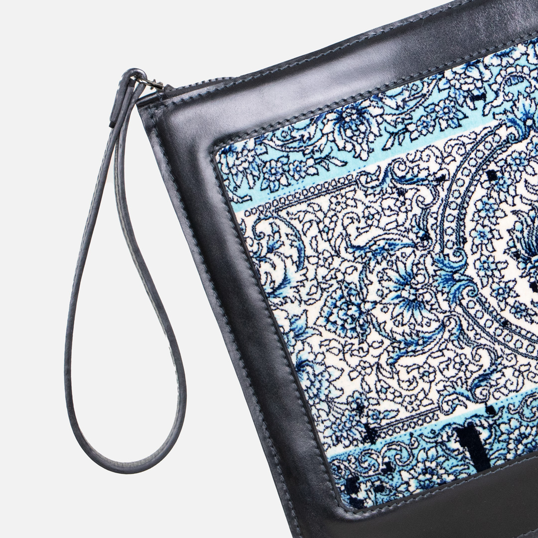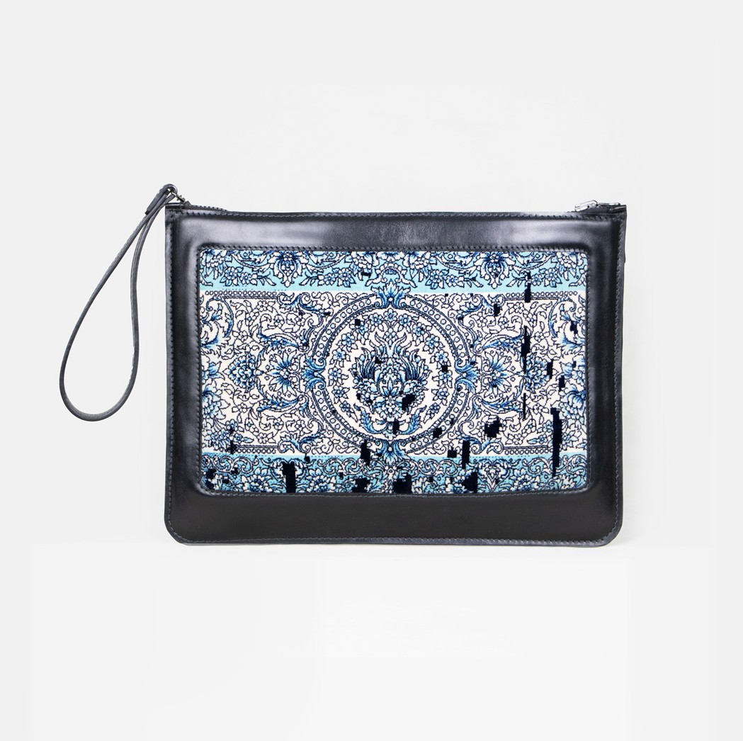 کیف کلاچ افشان چرم و فرش از سری ولورا