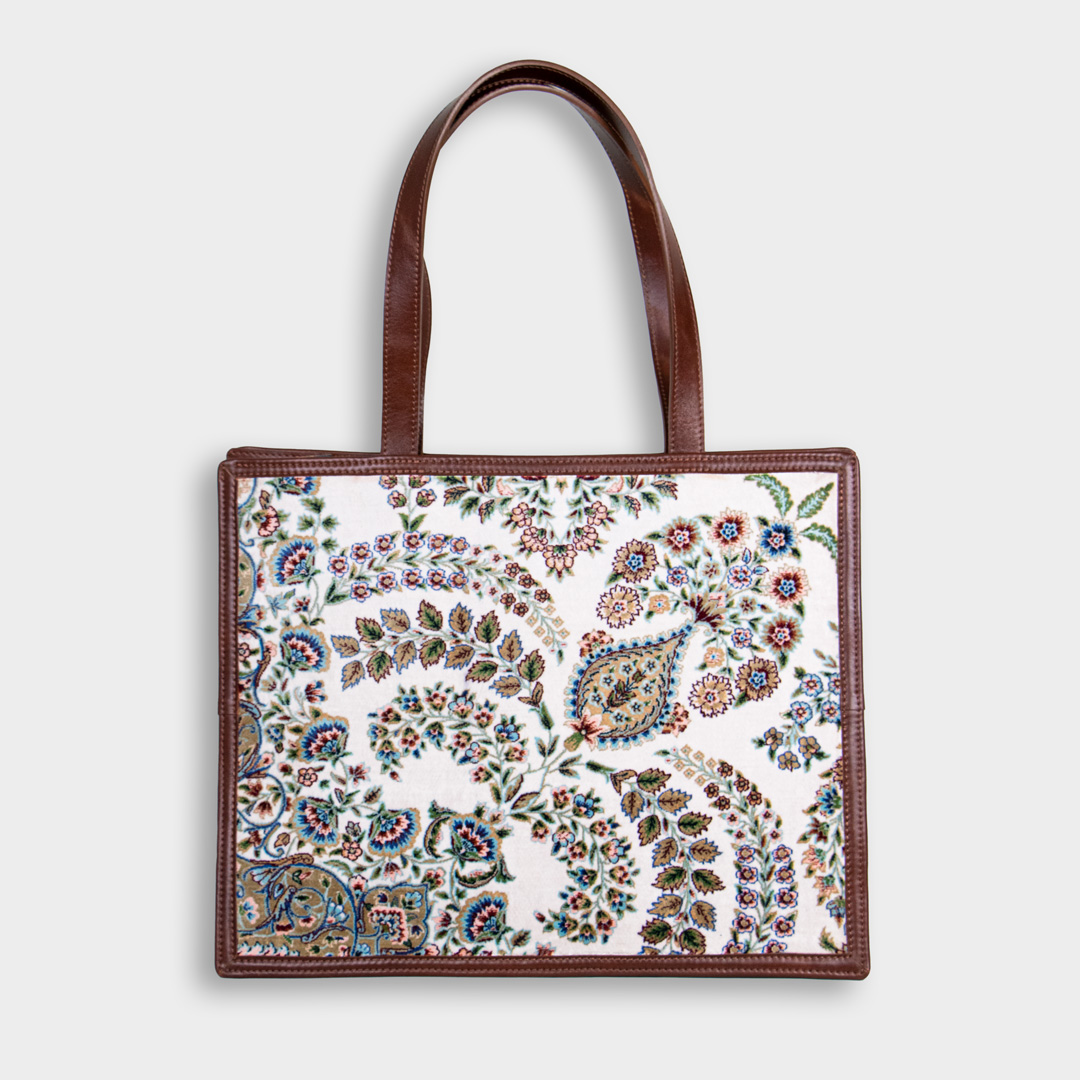 کیف توت بگ ارغوان از مجموعهی دیبا، سرودی است از شکوه هنر ایرانی در قالبی پرصلابت و معاصر. این اثر درخشان، حاصل همافزایی تیران استایل و فرش الماس کویر است؛ جایی که چرم طبیعی با فرشی نفیس درهم تنیده تا تصویری از عظمت، وقار و زیبایی جاودان ایران را به دوش بکشد. نقوش فیروزهای و خاکی فرش، یادآور شکوه باغهای بهشتی و ظرافت دست هنرمند ایرانی است، و چرم قهوهای گرم آن، استواری و اصالت را فریاد میزند. ارغوان نه صرفاً یک کیف، بلکه پرچمدار فرهنگی است که ریشه در هزار سال هنر، شور و هویت این سرزمین دارد.