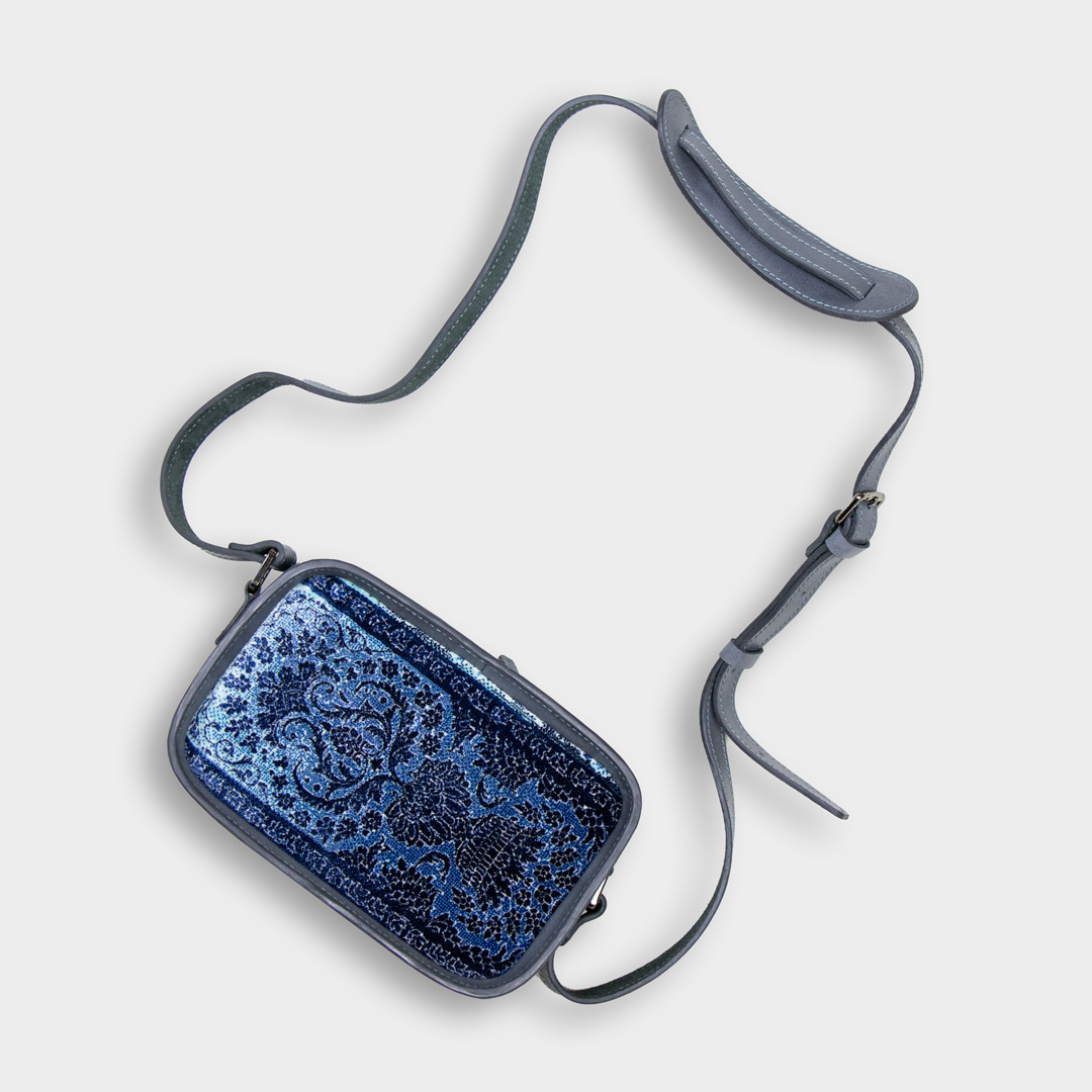 کیف دوشی هندسی از مجموعهی وِلورا، تولدیست از دل شکوه و نظم ایرانی؛ همان جایی که هنر نه تکرار گذشته، بلکه استمرار آن است. در این اثر مشترک از تیران استایل و فرش الماس کویر، هر خط و نقش، چون شعری از هندسهی مقدس ایرانزمین، در کالبدی مدرن زنده شده است. آبی عمیق فرش یادآور گنبدهای فیروزهای و آسمانِ بیپایان شرق است، و چرم طبیعی خاکستریاش، همچون زمینی استوار که زیبایی را در خود نگاه میدارد. هندسی نه فقط یک کیف، که بیانیهای از ظرافت، قدرت و درک عمیق از معناست، برای آنان که هر جزئی از زندگیشان، اثری هنریست.