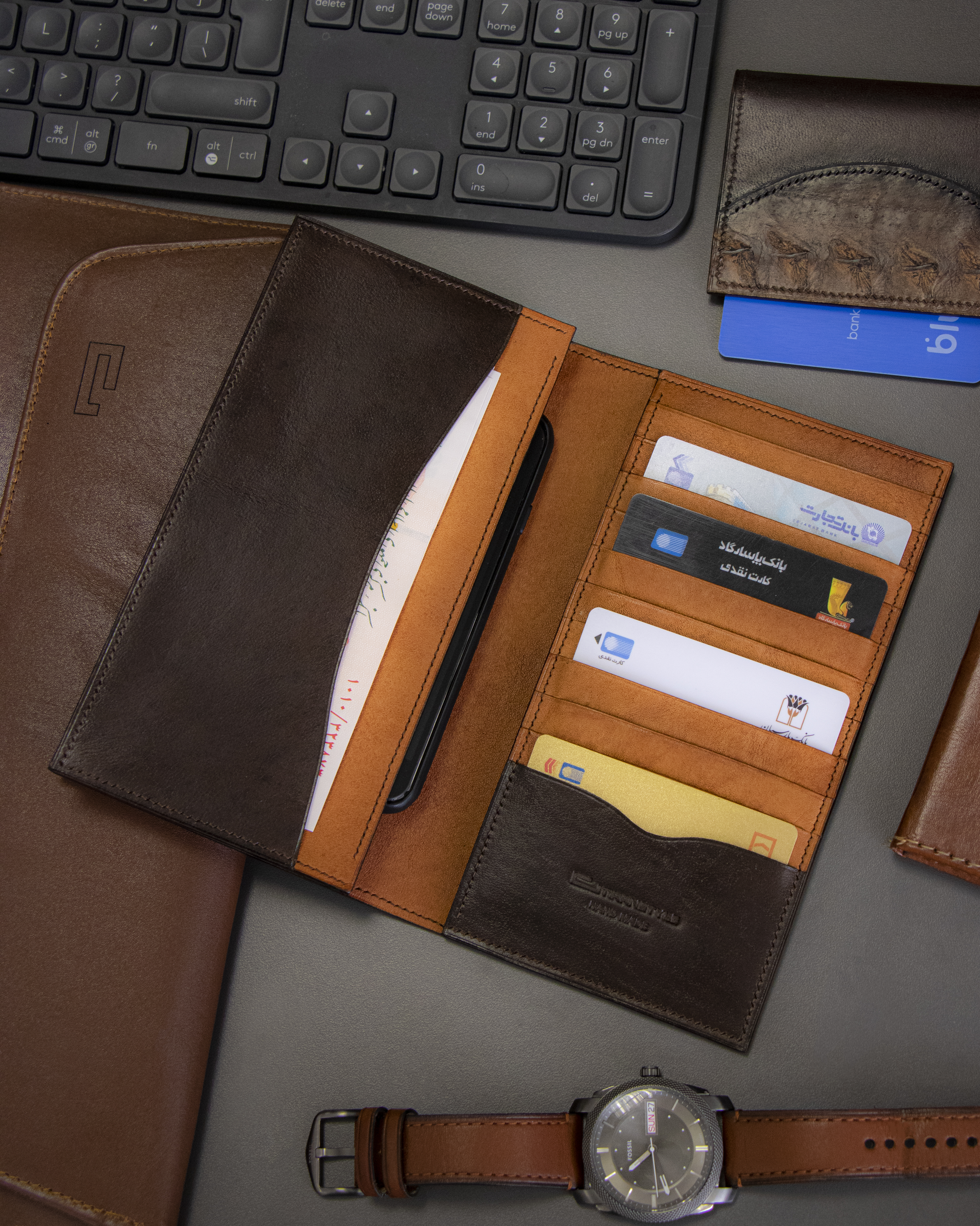 کیف کتی چرم خاویار تیران استایل، ترکیبی از چرم برجسته‌ی خاویار و چرم طبیعی شتر است که با دوختی کاملاً دستی و رنگ‌گذاری ظریف، به شکلی منحصربه‌فرد ساخته شده است. طراحی هوشمند این کیف، فضایی کاربردی و درعین‌حال ظریف ایجاد کرده تا بتوانید علاوه بر کارت‌ها و اسکناس‌ها، موبایل خود را نیز در آن جای دهید. بافت طبیعی چرم در گذر زمان زیباتر می‌شود و هر کیف داستان خاص خودش را روایت می‌کند؛ ترکیبی از سادگی، دوام و لوکس بودن در قالب فرمی مینیمال و جاودانه.
